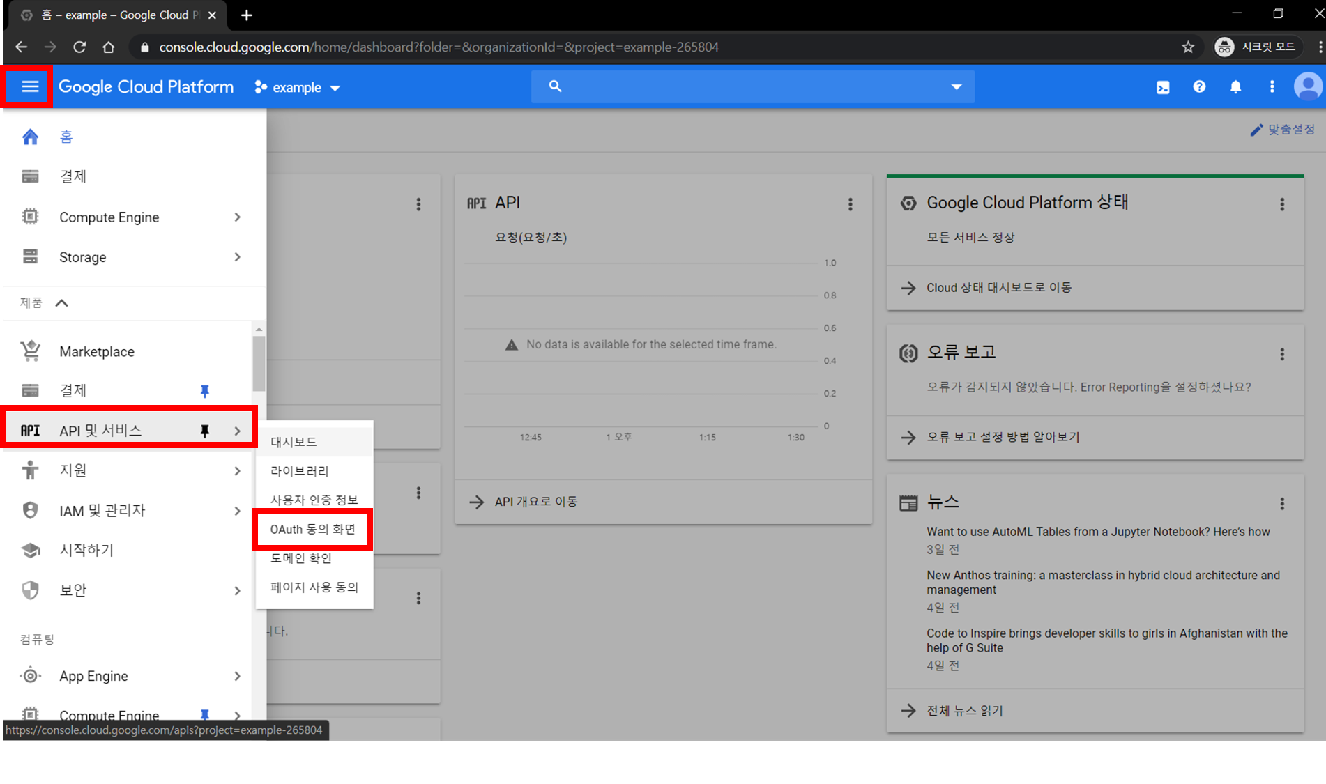 구글 OpenAPI 사용하기 (준비 사항 : 사용자 인증) 본문