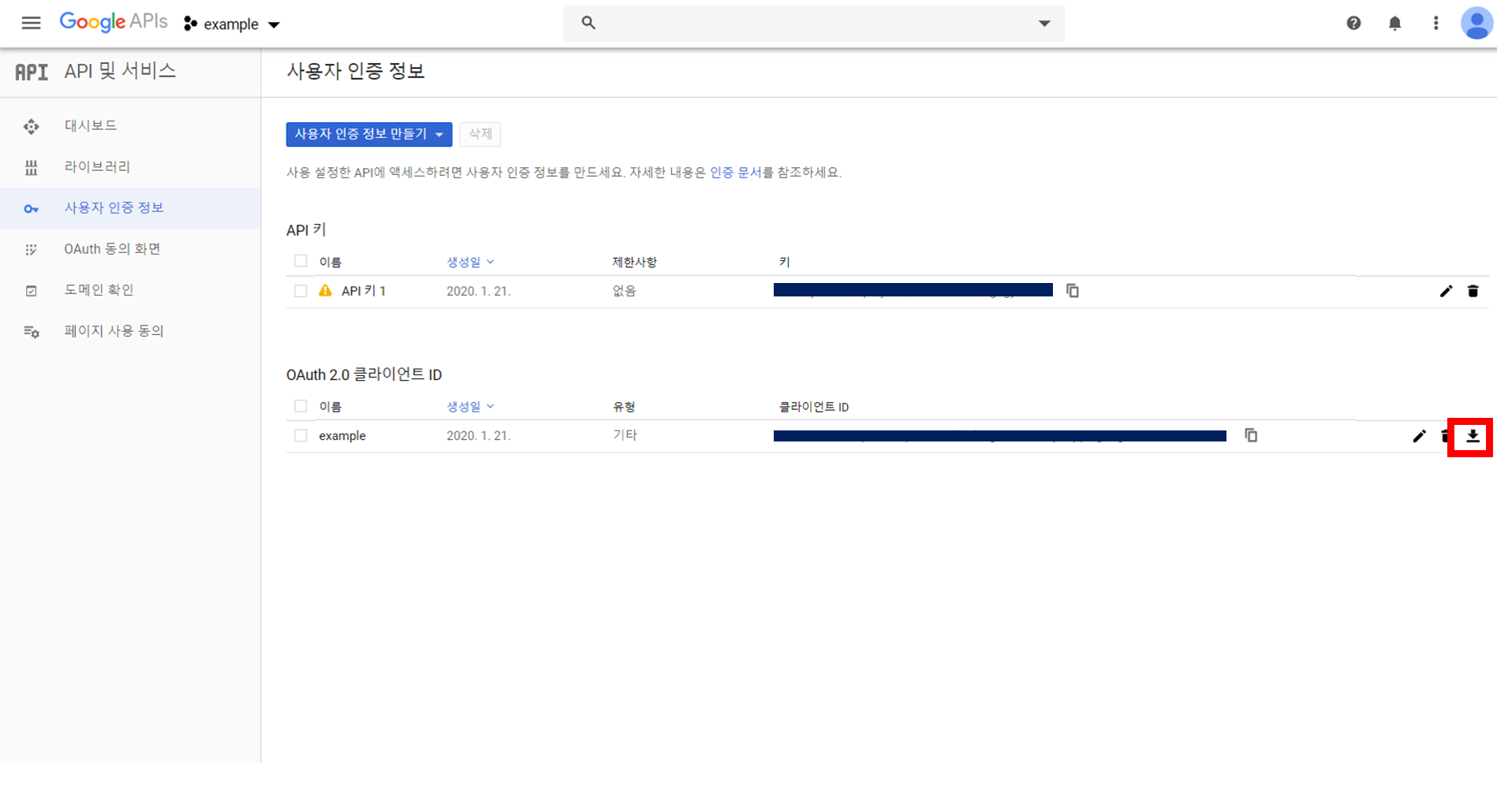 이제 [OAuth 2.0 클라이언트 ID] 파일을 JSON 형식으로 다운로드합니다.
