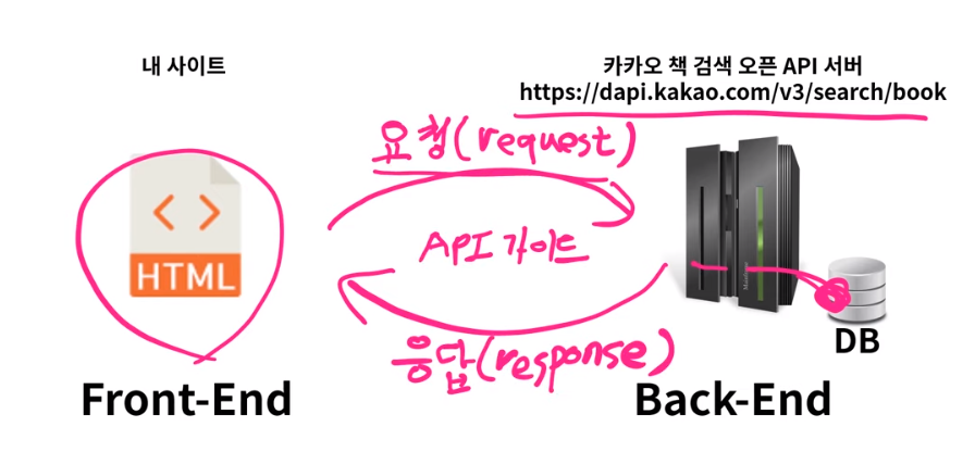 이 의미를 다시 한번 생각해 봅시다. 이렇게 결과가 동일하게 나온다는 의미는? 여러분들도 www.daum.net처럼 책 검색 front-end를 만들 수 있다는 의미입니다. 카카오에서 제공하는 OpenAPI(=back-end)를 이용하여 책 검색 front-end를 만들 수 있다! 정말 멋지죠?