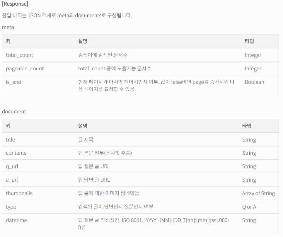 => JSON객체로 meta와 documents를 보내준다고 했는데, 결과가 제대로 나옴이 확인되었다.