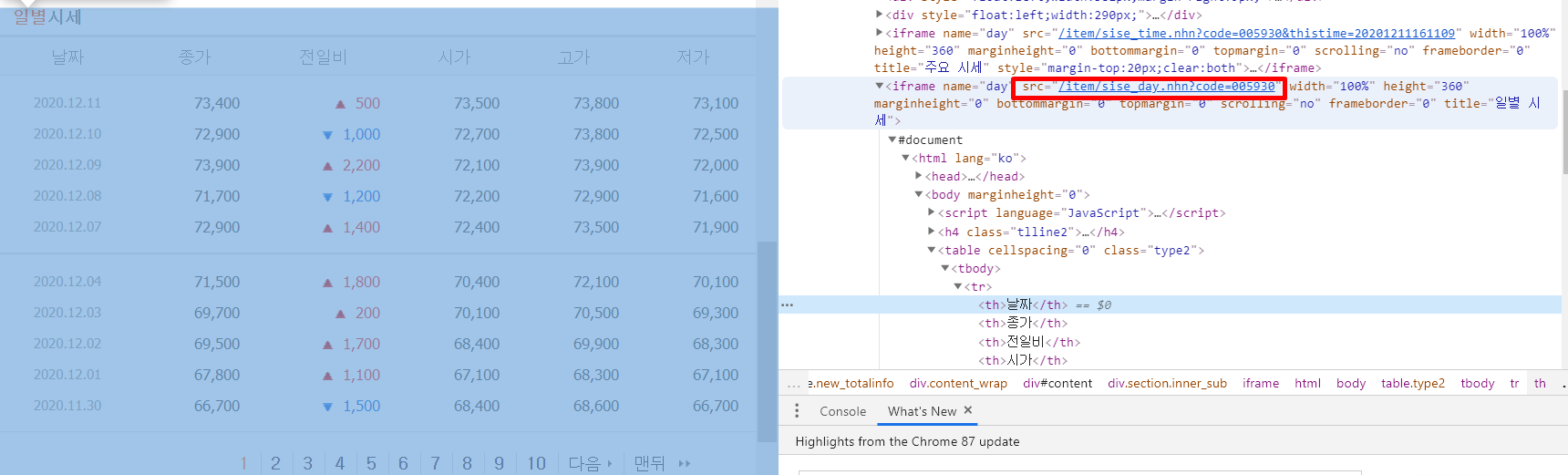 3-2) 일별 시세 가져오기